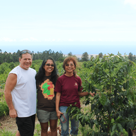 The couple quickly expanded their business to become farmers, processors, and roasters of coffee. Because of their science background, the two ran their farm like a laboratory. They started testing different processing methods and roasts, looking for ones that would bring out the best flavors in their coffee. Rusty also organized the Ka’u Coffee Growers Cooperative, a group of about 30 Ka’u coffee farmers.